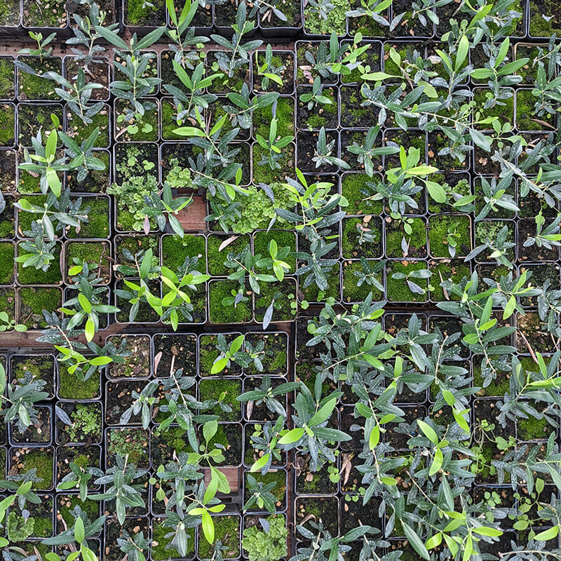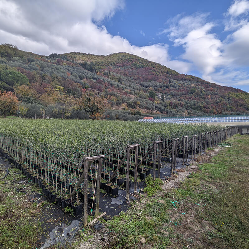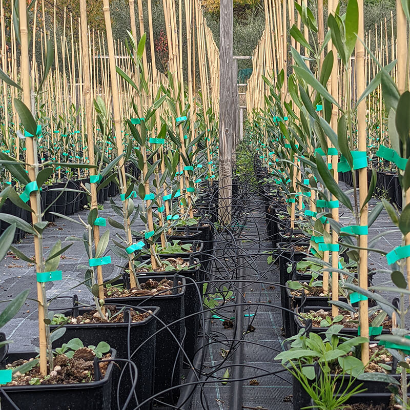 L'area del vivaio si estende su 2 ettari di terreno sul quale sono presenti 4000 mq di strutture ombreggianti e 1000 mq di serre. Vengono prodotti diversi formati di piante per andare incontro il più possibile alle esigenze degli agricoltori. Una parte minore è dedicata anche alla produzione di piante da siepe.