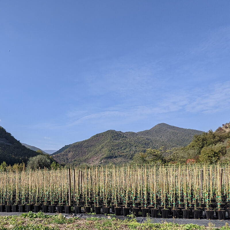 È qui che dal 1988 nascono i nostri ulivi di varietà taggiasca, da agosto a settembre vengono prodotte le talee direttamente da piante di ulivi varietà taggiasca appartenenti ai nostri uliveti e messe a radicare. Dopo 6 mesi avviene il primo travaso e la sistemazione sotto le strutture ombreggianti dove crescono per altri 24 mesi raggiungendo le dimensioni ideali per la vendita.